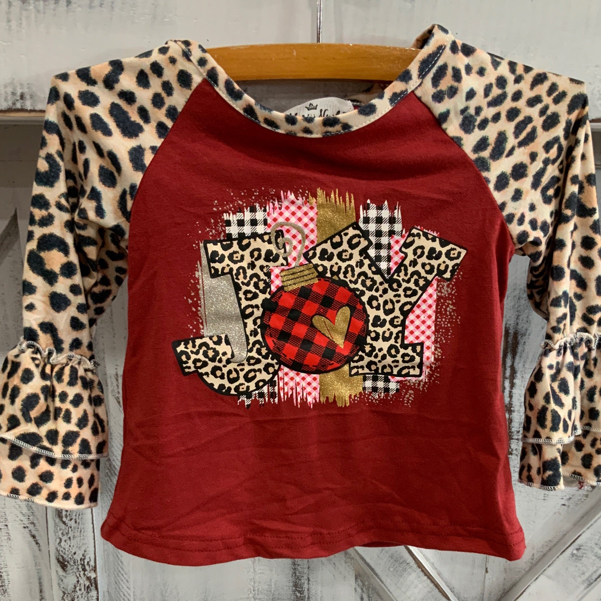 Burgundy Joy Leopard Raglan